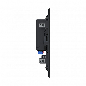 - Порт RJ45, два порта для модулей расширения KNX-TP, VRV/VRF, RS-485, ZigBee, Bluetooth (нет в комплекте), датчики температуры и влажности; 5 входов для сухих контактов, 2 реле 250В 5А, питание 24В 0.6А пост. тока или PoE (опционально), сенсорный экран 1280х800 точек, ориентация горизонтальная; звук - 2 х 2 Вт + микрофон.