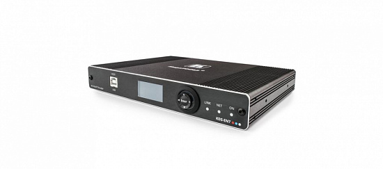 KDS-EN7 — кодер и передатчик в сеть Ethernet сигналов HDMI с разрешением до 4K@60 Гц (4:2:0), аудио, RS-232, ИК и USB. KDS-EN7 производит преобразование сигналов HDMI, эмбедированного аудио, RS-232, ИК и USB в цифровой поток, передаваемый по сети IP на основе медной витой пары в режиме Unicast или Multicast. Приёмником потока может служить, например, прибор KDS-DEC7.