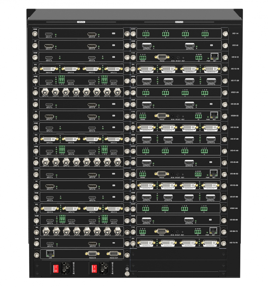 76x76 (12U шасси), до 4K, до 8 слоев, HDMI / DVI / DP / SDI / Аудио, бесподрывный, Предпросмотр, OSD, RS232, GUI