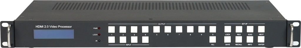 Поддержка до 4K 60Гц 4:4:4, произвольное разрешение, 2 и более видеостен одновременно, до 4 слоев (стена макс. 12 дисплеев), макс. стена 16 дисплеев (1 слой), GUI, RS232, HDCP 2.2, 3,5мм аудио выход