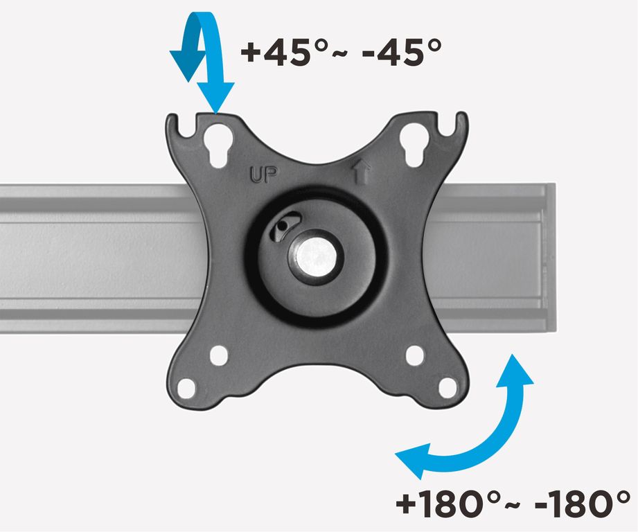 Универсальный настольный кронштейн для 2х мониторов с возможностью регулировки положения монитора в 4х проскостях. Модель имеет держатель для мини ПК с возможностью регулировки глубины 12-70 мм. Дополнительным удобством является расположение крепежей для обоих мониторов на одной высоте.