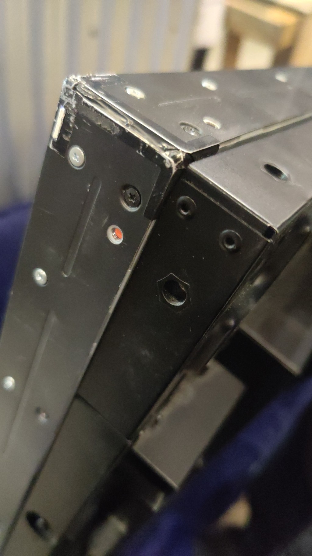 Упаковка вскрывалась, рваная, грязная, вся в скотче. Оборудование использовалось. Со всех сторон на углах видны потертости и сколы. По краям на экране видны засветы.