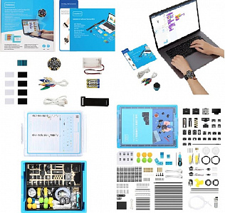 Игровой набор для обучения программированию детей, для создания робототехнических проектов (например «Умный дом»). В основе набора беспроводной программируемый контроллер с программируемыми модулями (RGB-светодиодами, гироскопом, микрофоном, кнопкой и тд). Программирование осуществляется на ПК в бесплатно скачиваемом ПО mBlock 5, основанном на визуальном языке Scratch3.0. Программа загружается кабелем USB. Питание контроллера от батареек 3 ААА. В наборе содержатся аксессуары для контроллера - ремешок для создания часов, зажимы «крокодил» и т/д.;