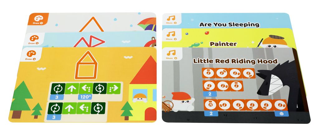В составе набора: робот, управляющая башня, контрольная панель, блоки программирования, обучающая брошюра, специальное поле с пластиковыми элементами. Управляющая башня и робот оснащены аккумуляторами, которые заряжаются через интерфейс USB (5 Вольт). Программа составляется с помощью пластмассовых блоков (без электроники внутри), на которые нанесены интуитивно понятные символы (стрелки, цифры, ноты, градусы и т.п.). Блоки располагаются на специальной контрольной панели в зоне видимости камеры.