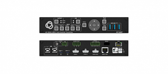 KIT-500 — комплект, состоящий из передающего и приёмного устройств. Передающее устройство KIT-500Т производит независимую (матричную) коммутацию сигнала с двух входов USB-C и двух комбинированных входов HDMI/USB на выходы HDMI и HDBaseT. Приёмное устройство KIT-500R осуществляет автоматический выбор между входом HDMI и входом HDBaseT и преобразует сигнал HDBaseT, принимаемый от передатчика KIT-500Т по кабелю типа «витая пара», в сигналы HDMI и USB с осуществлением повышающего или понижающего масштабирования видеосигнала c целью приведения разрешения к собственному разрешению подключенного к приёмнику дисплея HDMI. Данное решение позволяет подключить удалённые периферийные устройства (например USB-камеры) к локальному хосту. Комплект KIT-500 обеспечивает передачу сигнала по кабелю витой пары на расстояние до 40 м для разрешения 4K@60 Гц (4:2:0), и на расстояние до 70 м для разрешения Full HD 1080р@60 Гц.